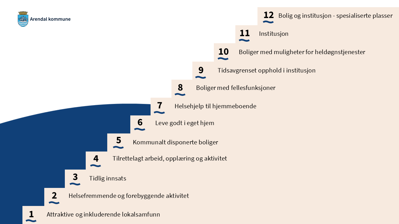 Ved å vise til innsatstrappa kan vi tydeliggjøre forventningene til tjenestene våre, og til hvilke valg vi ønsker at innbyggerne i Arendal skal ta ved å spørre seg selv: